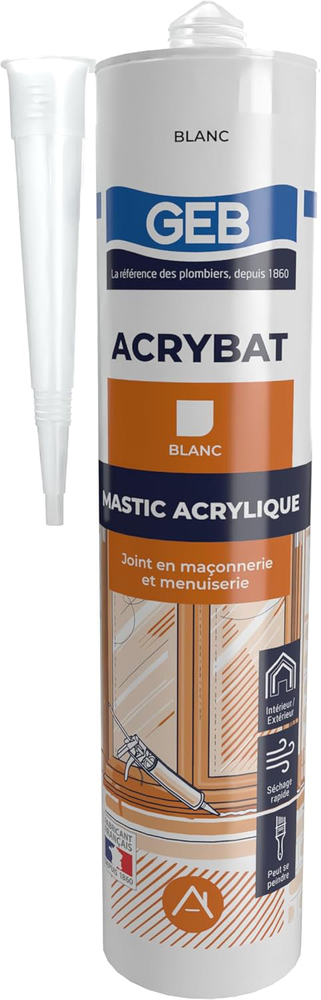 ACRYBAT ACRYL BLANC CART 310ML Réalisation de joints étanches à l’intérieur et à l’extérieur des constructions. | Traitement des fissures verticales. | Joints entre maçonnerie et menuiserie. | Étanchéité sous appui bois, métal ou P.V.C.