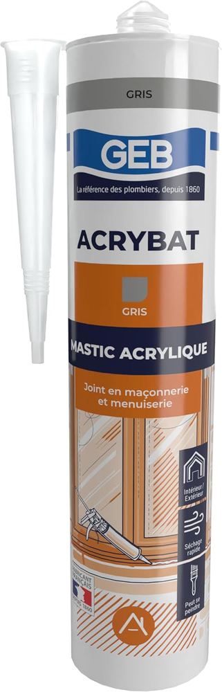 ACRYBAT ACRYL GRIS CART 310ML Réalisation de joints étanches à l’intérieur et à l’extérieur des constructions. – Traitement des fissures verticales. – Joints entre maçonnerie et menuiserie. – Etanchéité sous appui bois, métal ou P.V.C.