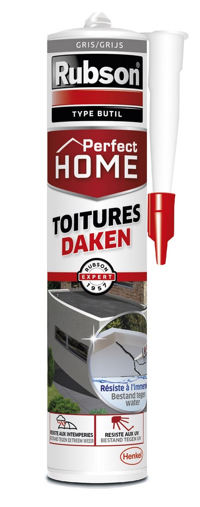 PERFECT HOME TOITURE GRIS 280ML Mastic à base de polyoléfines pour joints et fissures, raccords et réparation sur toitures (fibre – ciment), tôle, feutre bitumeux, terrasses non circulables, shingle et gouttières en zinc ou PVC