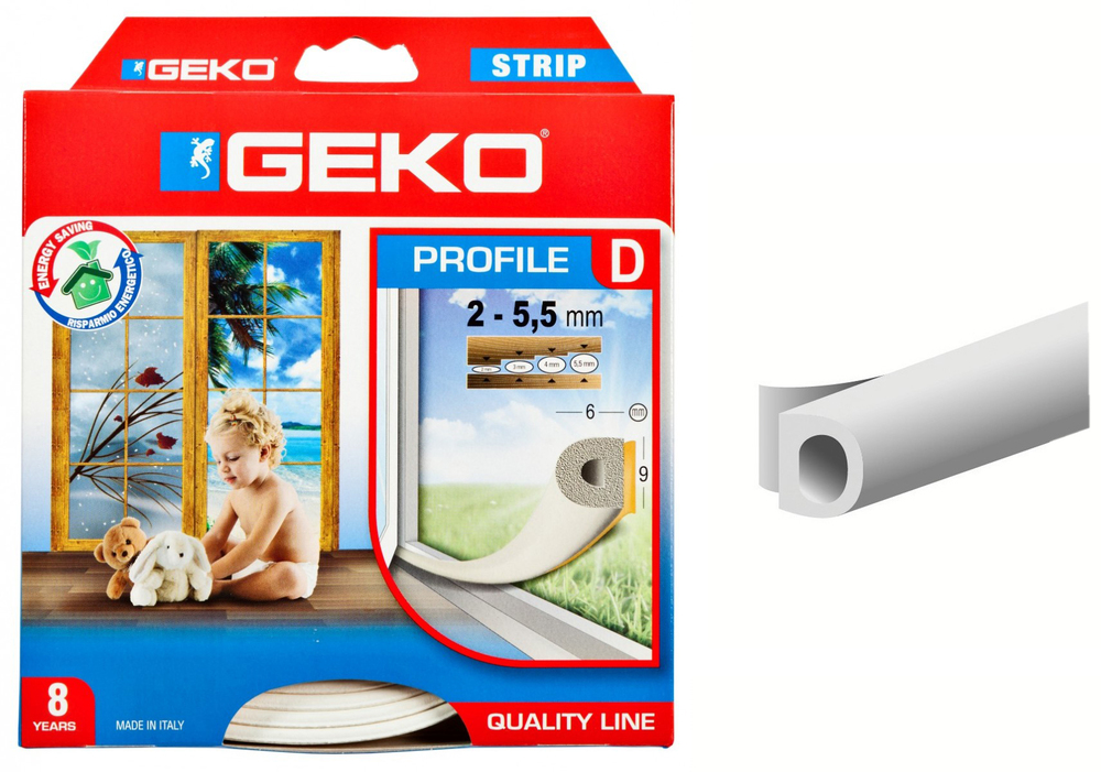 GEKO JOINT EPDM PROFIL D BLANC Joint adhésif de forme « D » pour espace important. | Joint de calfeutrage adhésif en caoutchouc extrudé pour portes et fenêtres contre le froid, les courants d’air et l’humidité.
