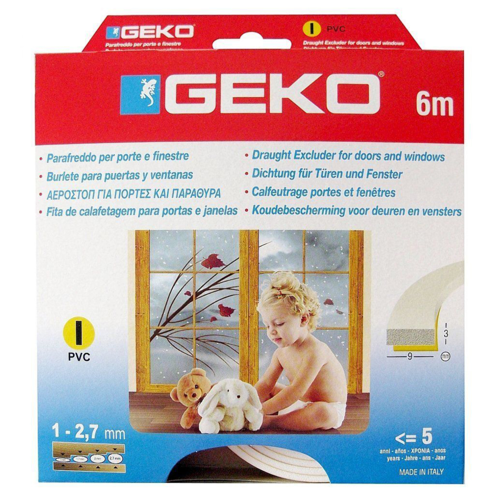 GEKO JOINT MOUSS PVC PROFIL I BLANC Calfeutrage adhésif en mousse PVC pour le calfeutrage des portes et fenêtres. | Rattrapage de 1 à 2,7mm. | Durée moyenne: