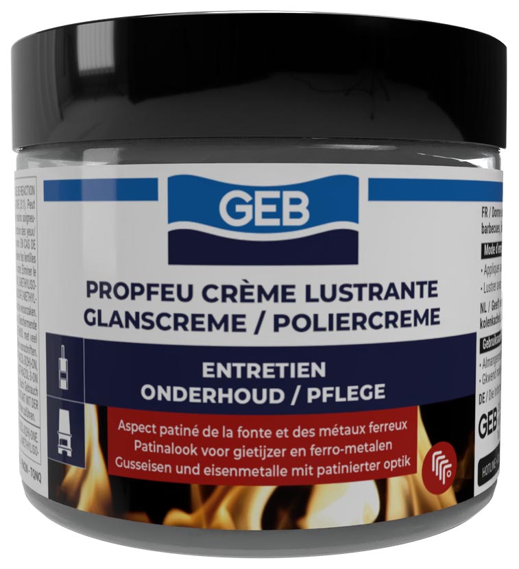 FEU PROPFEU CREME LUST 220ML Cette cire est destinée à lentretien régulier et à la protection des surfaces métalliques exposées à la chaleur dans les environnements domestiques et professionnels. | Elle permet de restaurer un effet patiné sur les fontes et métaux ferreux tout en formant une couche protectrice contre loxydation. | Sa texture crème facilite lapplication au chiffon ou au pinceau, même sur des éléments sculptés ou à relief. | Elle ne dégage pas dodeur lors de lutilisation, ce qui améliore le confort en espace clos. | Les excédents peuvent être nettoyés simplement à leau savonneuse, ce qui optimise la maintenance. | Ce produit convient aux plaques, chenets, hottes, foyers ou tuyaux de poêles, cheminées et barbecues.