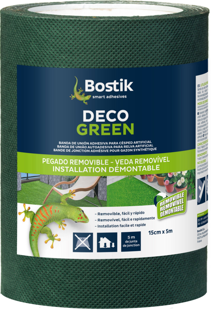 BANDE JONCTION ADHESIVE DECO GREEN Adhésif sur une face : permettant de réaliser la jonction des lés de gazon, sans être collé au sol pour laisser leau sécouler. | Résiste à lhumidité et à la chaleur. | Usage intérieur et extérieur de préférence sous abri.