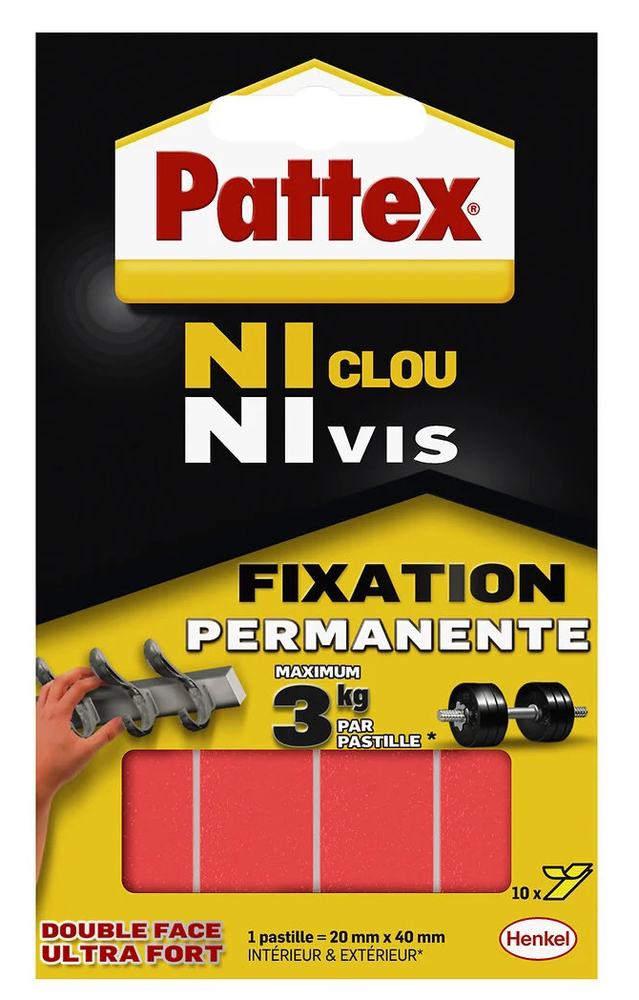 PATTEX NCNV 2KG75 PASTIL687066 Ces 12 pastilles adhésives double face ultra fortes sont idéales pour fixer vos objets de manière définitive sur tous types de support. | Épaisseur 1.14mm | Résistant à l’humidité. | Intérieur/Extérieur.