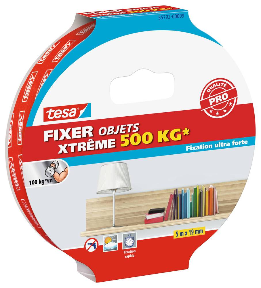 TESA FIXER OBJET DBL F EX500 5X19 Fixation Ultra Forte, sûre et de longue durée sans vis, chevilles ni clous. | Tient jusquà 10kg pour 10cm d’adhésif. | Intérieur/Extérieur.