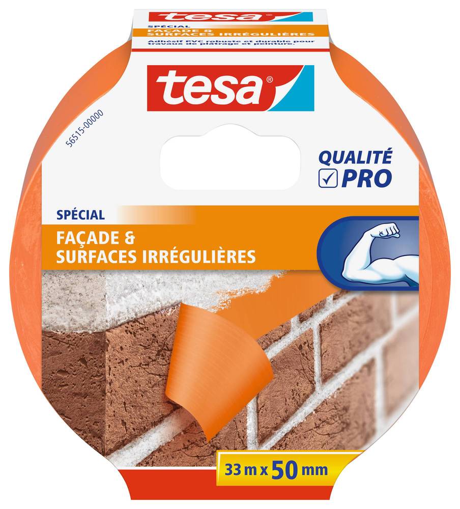 TESA MASQU PVC ORANGE 33X50 Utilisation intérieure et extérieure. | Sur surfaces régulières et irrégulières : bois, façade, crépi, métal. | Résistant aux intempéries et aux U.V. pendant 2 semaines. | Déchirable à la main.