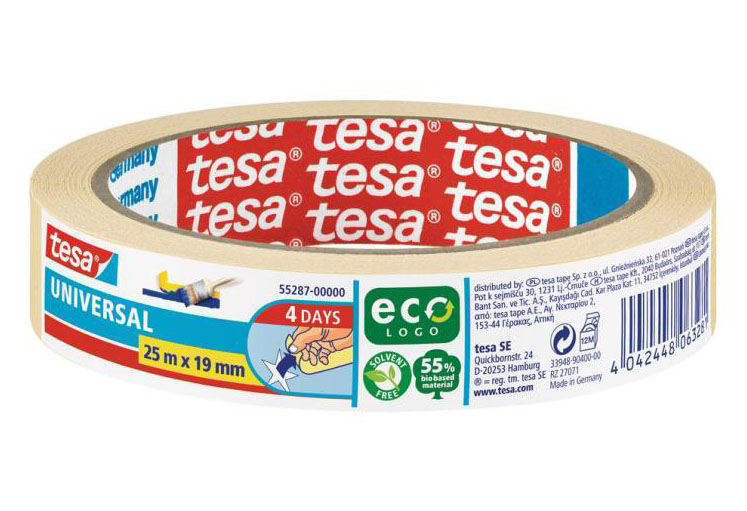 TESA MASQUER ECONOMY 25Mx19MM Adhérence optimisée garantissant des contours nets et un résultat propre sur la plupart des surfaces. | Conçu à partir de matériaux éco-responsables avec 55 % de composants biosourcés, cet adhésif offre une alternative respectueuse de lenvironnement. | Son retrait sans résidus est assuré jusquà 4 jours après lapplication, facilitant les projets de peinture et de décoration. | Adapté pour une utilisation sur des surfaces lisses telles que le bois, les murs peints et le papier peint, il permet un masquage précis sans altérer le support. | Sa conception sans solvant contribue à un usage plus sain, tout en garantissant une excellente tenue.