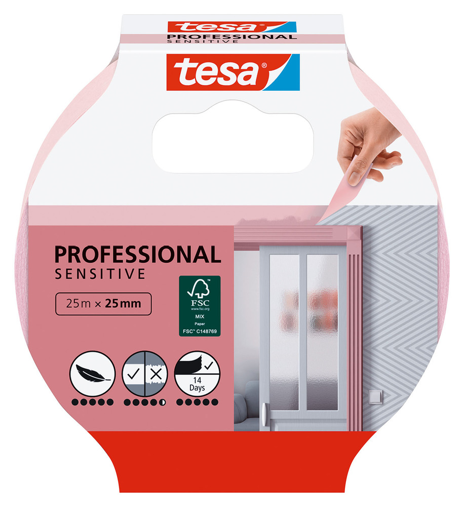 TESA MASQUER ROSE SURF DELIC 25X25 Bords nets et précis. Pour tous types de peintures & laques. | Pour des surfaces délicates et papier peint. S’enlève sans trace jusqu’à 14 jours. | Spécialement conçu pour protéger les surfaces sensibles comme le papier peint, les murs fraîchement peints, et autres supports fragiles. | Se retire proprement, sans laisser de résidus ni abîmer les surfaces