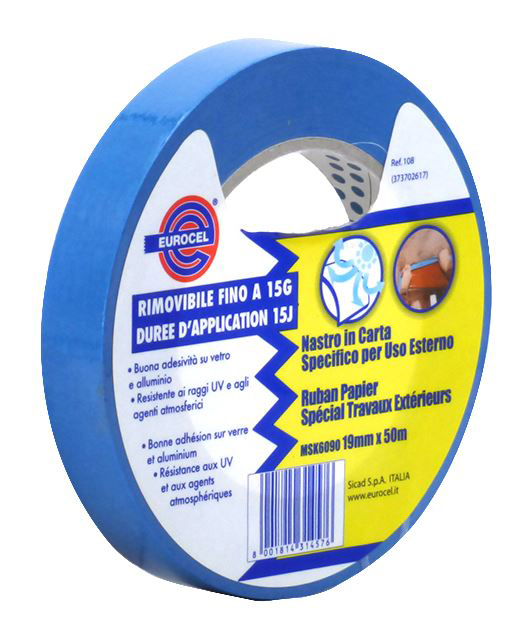 ADHESIF TOILE MASQUAGE BLEU19X50 Recommandé pour applications à l’extérieur et également à l’intérieur lorsque les surfaces sont exposées aux rayons U.V. et à l’humidité.