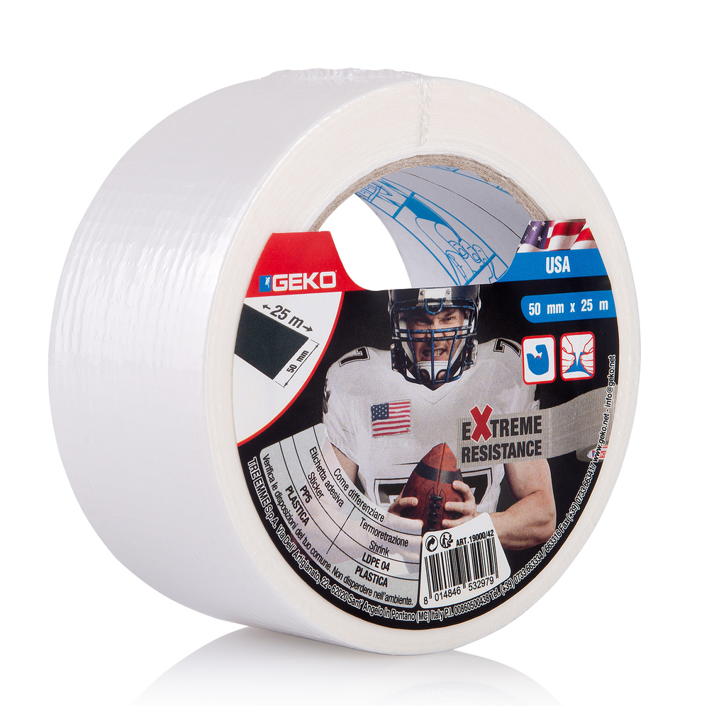 GEKO ADH TOILE BLANC 50MMX25M Ruban adhésif toilé, avec support LDPE, renforcé par grille en fibre de coton. | Il résiste à l’eau et peut être appliqué en extérieur. | Facilement déchirable à la main. | Peut avoir un usage domestique pour toute réparation même temporaire. | Disponible en plusieurs coloris tels que : Noir, gris, blanc, bleu