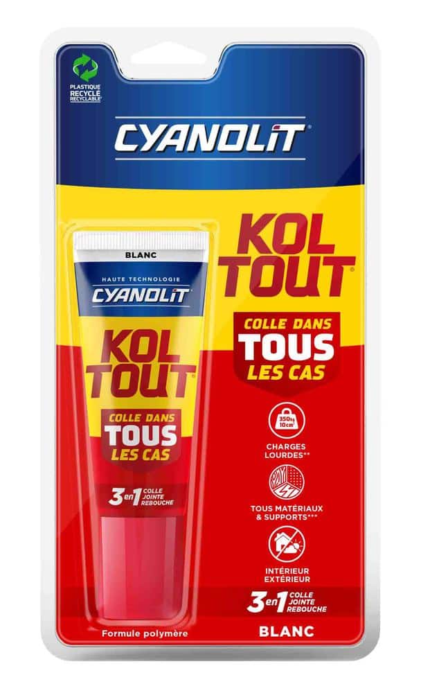 KOLTOUT 3EN1 BLANC BLISTER 50ML Colle polymère blanche haute performance pour tous travaux de fixation. | Action 3-en-1 : colle, joint et rebouche sur tous matériaux et supports. | Résiste aux vibrations, flexions, chocs et variations de température. | Excellente tenue : 250 kg/10 cm² avec prise immédiate. | Utilisable en intérieur et extérieur, même sur surfaces humides. | Application simple et propre, sans solvant ni odeur. | Elle peut être peinte sous 72h avec une peinture acrylique. | Format compact 50 ml, parfait pour les travaux de précision.