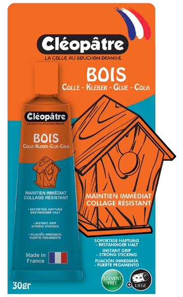 CLEOPATRE COLLE BOIS 30 GR La colle Bois est spécialement conçue pour coller le bois et le liège. | Elle offre un maintien immédiat et un collage résistant. | Elle ne contient pas de solvant.