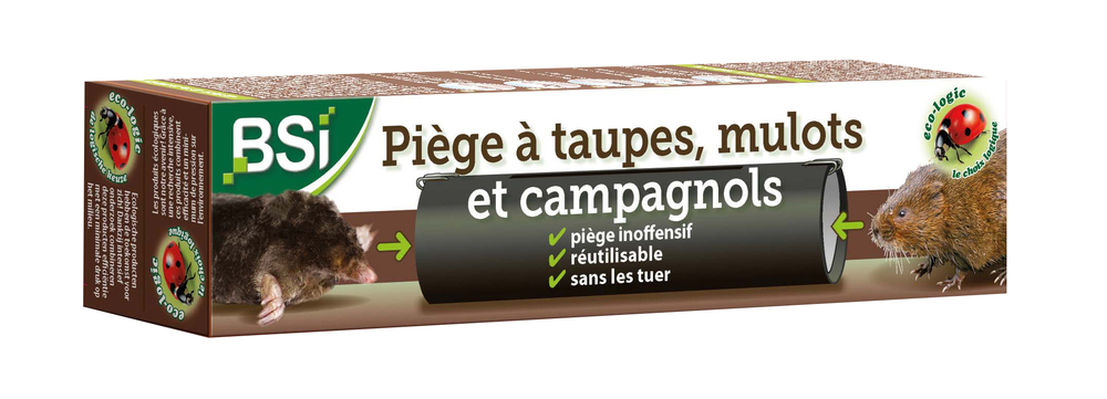 PIEGE A TAUPE Piège à taupes réutilisable et inoffensif pour attraper les taupes, mulots et campagnols à l’état vivant. Piège tubulaire avec volets en aluminium, avec fente de contrôle en haut du piège.