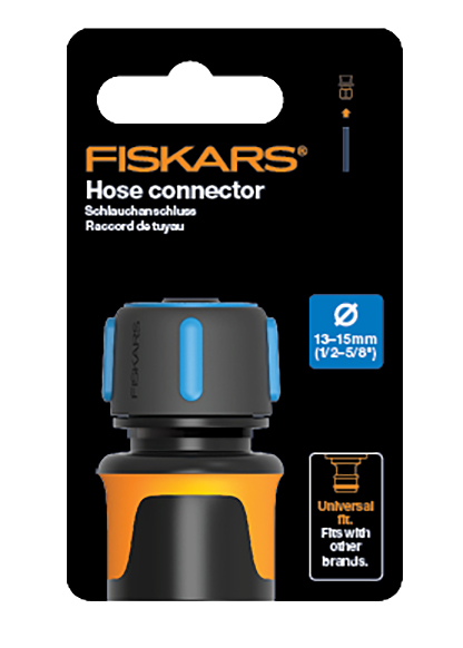 RACCORD DE TUYAUX CONFORT 13-15MM Dotés d’une conception simple pour enclencher et retirer, ce raccord Fiskars vous permet de changer rapidement et facilement des nez de robinet, des lances, des arroseurs et d’autres extrémités de tuyaux de diamètre de 13 à 15mm. | Revêtement SoftGrip confortables garantissent une manipulation sûre, même lorsqu’il est mouillé. Design ergonomique. | Compatibles avec des produits d’arrosage d’autres marques.