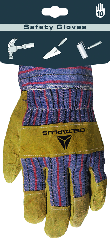 GANT MANUTENTION GEN CROUTE BOV 10 Gants de manutention en cuir croûte de bovin. | Dos toile avec renfort cuir. | Manchette en toile renforcée.