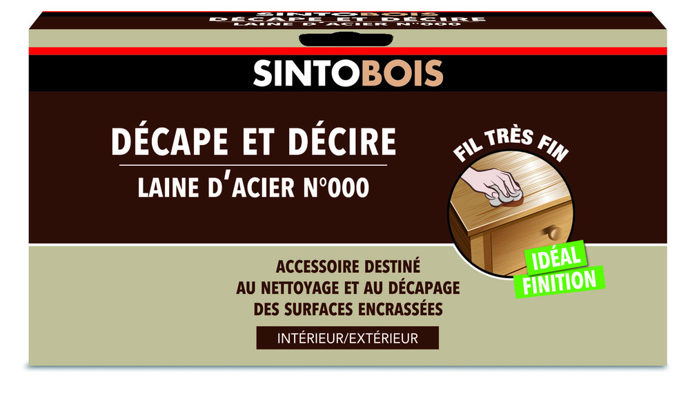 LAINE D ACIER N000 150 G Nettoie, décape et décire les surfaces encrassées. | Pour toutes les essences de bois. | Intérieur/Extérieur. | Fil très fin, idéal pour les finition.