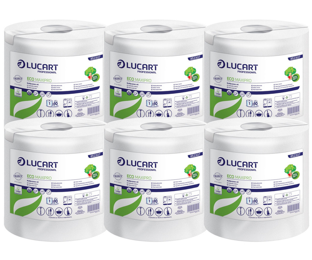 BOBINE MAXI PRO 450 FORMATS (G) Un papier multi-usages idéal pour absorber les liquides et s’essuyer les mains. | L’EcoMaxipro est très absorbant et résistant. | Essuie-tout en ouate de cellulose, prédécoupée, 2 épaisseurs. | Grande capacité une bobine équivaut à 10 rouleaux standards.