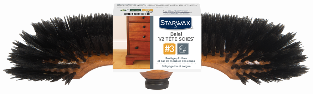 BALAI 1/2TETE 90%SOIE SOL INTERIEUR Idéal pour les parquets. | Balayage très fin. | Forme demi-tête : nabîme pas les meubles. | 90% soies les, 10% fibres synthétiques.