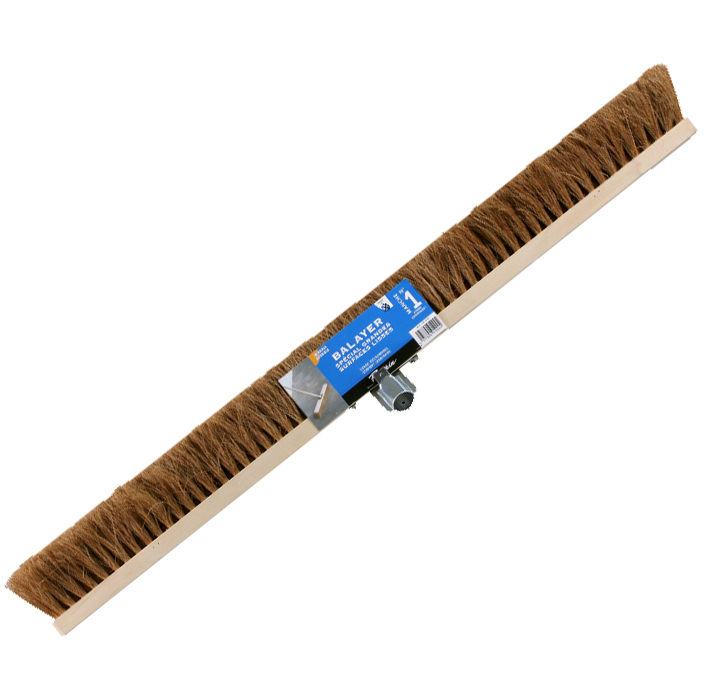 BALAI COCO 100CM S’adapte sur manche type 1. | Douille laitonnée diam. 28mm. | Fibres coco. | Semelle bois. | Pour atelier, terrasse et garage.