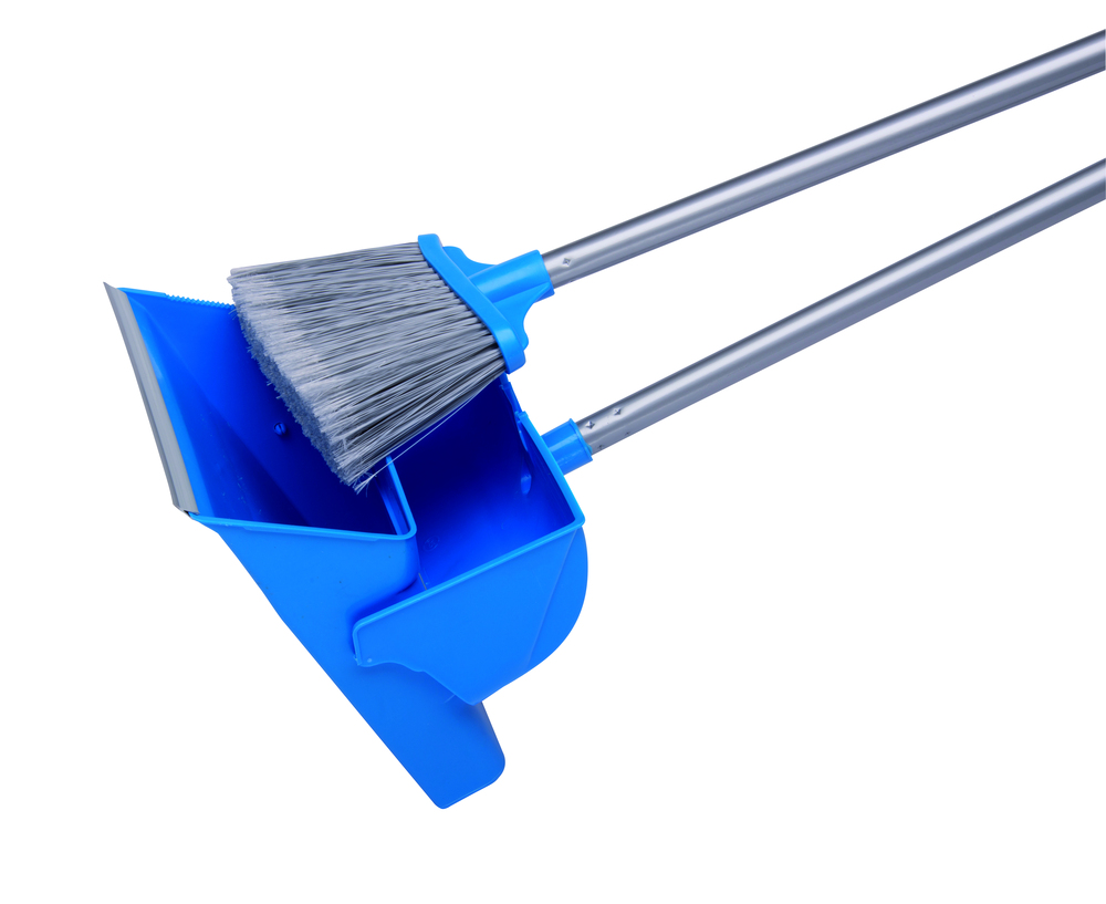 PELLE BALAYETTE AEROPORT Évite de se baisser, avec bac escamotable. | Rangement facile. | Polypropylène. | Fibres vinyle fleuré sortie 90mm. | Pelle escamotable, profilé souple rapporté en bout. | Longs manches clipsables 75cm.