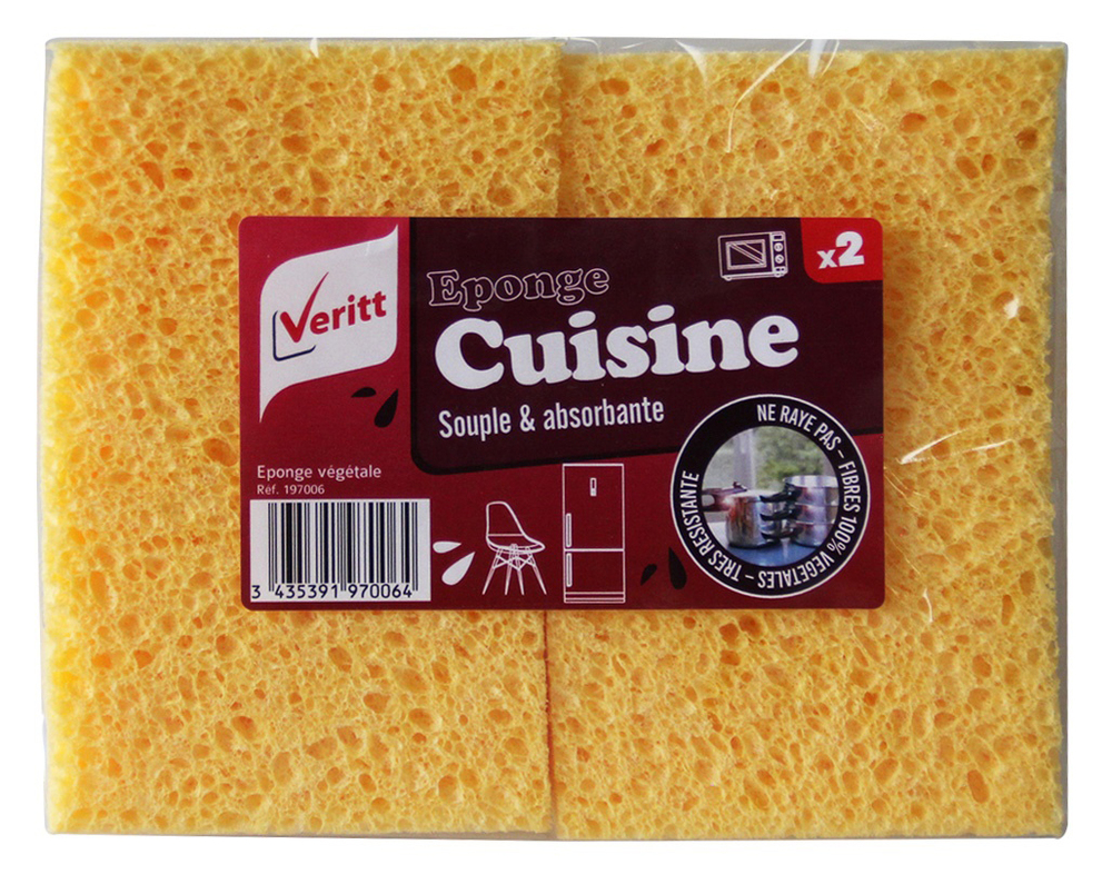 2 EPONGES VEGETALES 12X8 VERITT Eponges végétale souples et absorbantes. | Très résistantes. | Fibres 100% végétales. | Ne raye pas. | Dim. : 12X8x3cm