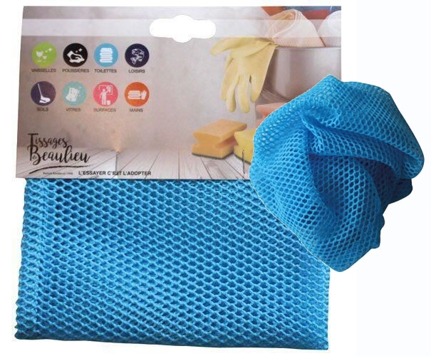 FILET BLEU MAILLE RECURANT 34X34CM Idéal pour laver la vaisselle et nettoyer les robinetteries. | Ne raye pas et récure efficacement. | Résiste à 200 lavages en machine à 60°C ou au lave vaisselle.