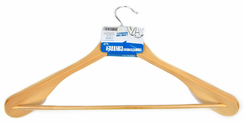 CINTRE BOIS ANTIGLISSE EPAUL LARGE Porte manteau galbé épaulement large gaine antiglisse. | En bois d’Erable. | Dim. : 230x425x55mm | Poids : 235g