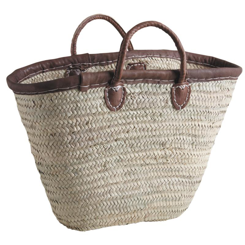 Panier Couffin Palmier Naturel + Bord et Poignées Cuir 55 cm