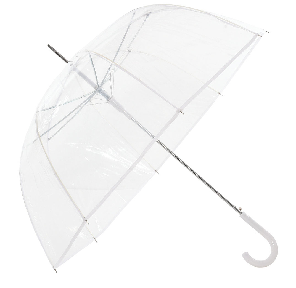 PARAPLUIE TRANSPARENT CLOCHE Un grand parapluie automatique tendance qui vous protègera parfaitement de la pluie tout en vous laissant un maximum de luminosité et de visibilité. | Coloris assortis du liseré blanc ou noir.