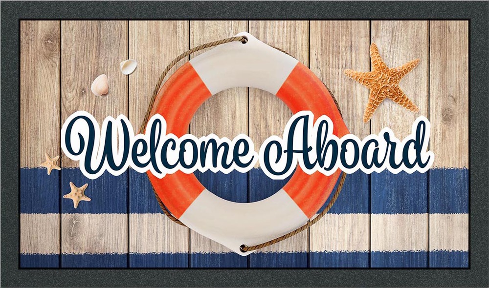 FORMAT PRINT WELCOMSALVAGENTE 40X68 La base du tapis Format Print est réalisé en caoutchouc recyclé, issu du broyage de | pneumatiques usagés. | Cette structure le rend écologique, antidérapant, résistant à l’usure et aux changements de conditions climatique et facile à nettoyer. | Motif marin bouée de sauvetage.