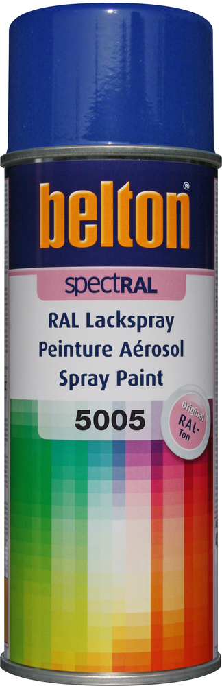 SPECTRAL BLEU SECURITE 400 ML Peinture en aérosol normée RAL | | Les teintes RAL regroupent une vaste palette de nuances normalisées, utilisées dans les domaines les plus divers. Dans le secteur de lameublement, pour la décoration des bibelots, pour des peintures décoratives ou en industrie. belton spectRAL vous permet de trouver rapidement et en toute fiabilité la bonne nuance de couleur. Lutilisation des peintures en aérosol belton RAL vous assure une parfaite restitution des nuances. | | Plus dassurance lors du choix de la couleur: | Palette de nuances | Une qualité et une précision de teinte normalisée | Convient aussi bien pour lintérieur que lextérieur | Idéale pour réparer ou rénover