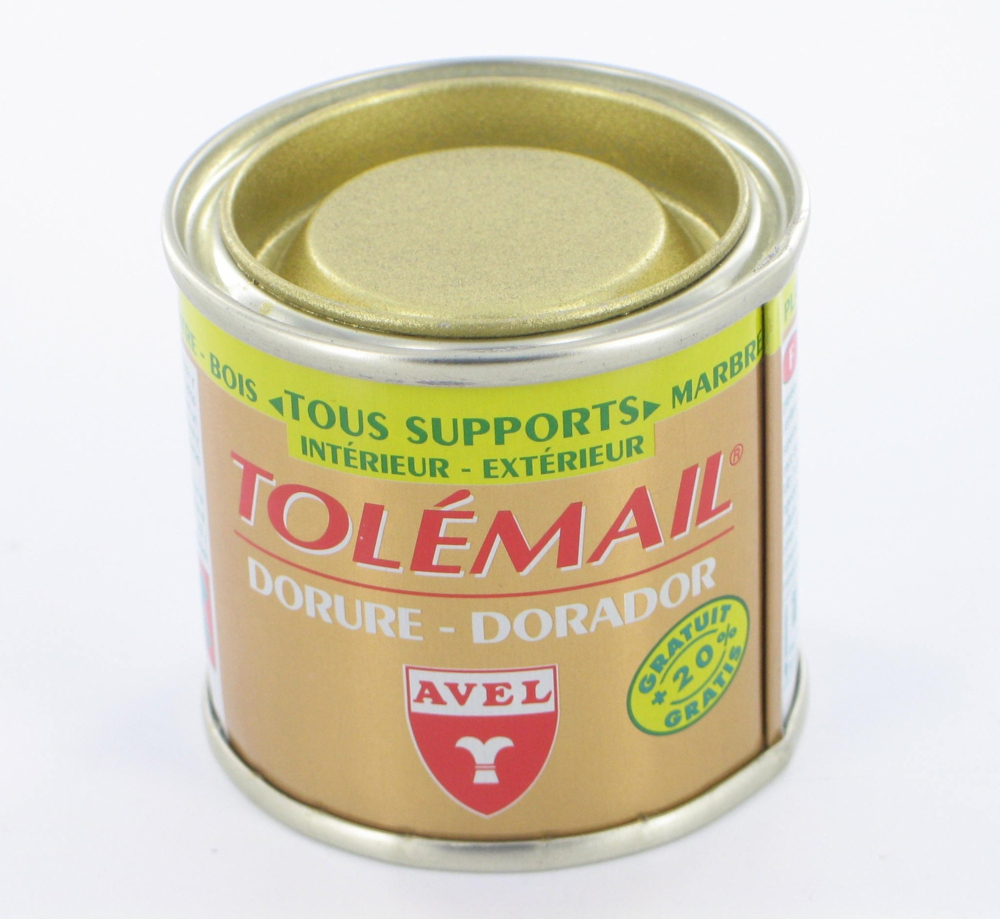 TOLEMAIL VIEIL OR DORURE 50ML A base de poudre de bronze. | Décore et restaure tous les objets, tous les supports. | Fort pouvoir couvrant. | Intérieur/Extérieur. | Rendement : 15 à 20 m²/l