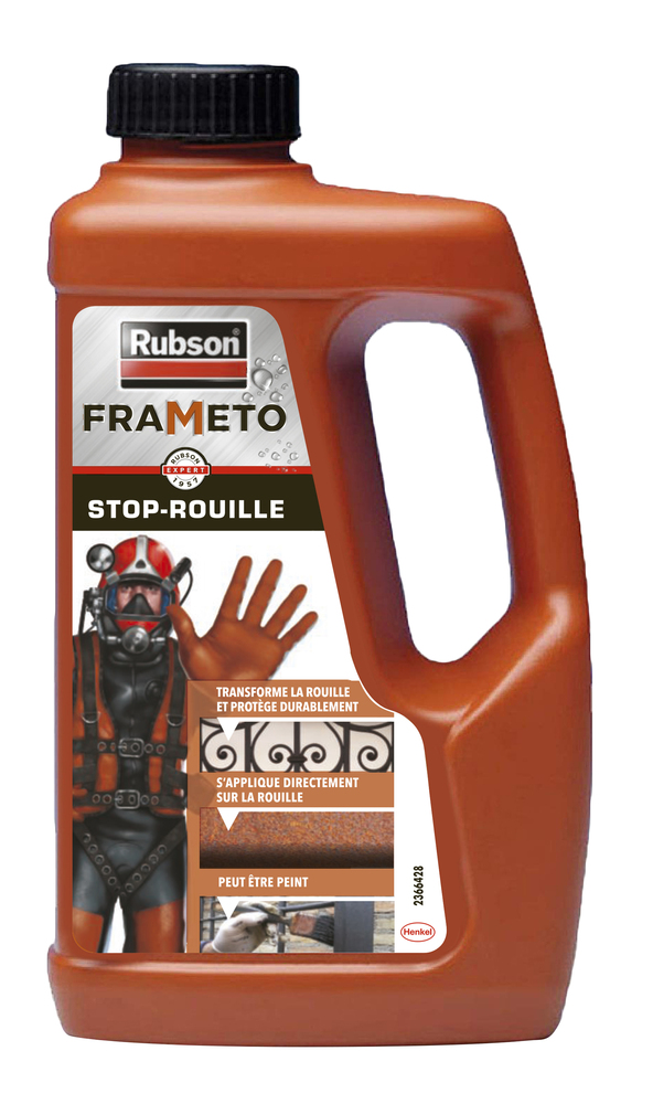 FRAMETO ANT ROUIL 500ML 788863 Anti-rouille à utiliser pour le traitement des métaux ferreux, il s’applique directement sur la rouille, la transforme et protège durablement le mobilier de jardin, portails, grilles… | Frameto Stop-Rouille agit rapidement et peut être peint. | Ne contient pas de plomb.