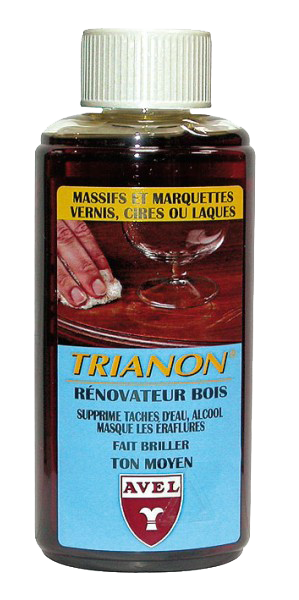 AVEL RENOV TRIANON 200ML BOIS MOY Supprime les taches d’eau, d’alcool, masque les éraflures. | Ravive les couleurs et fait briller tous les types de bois : vernis, laqués, cirés, bruts… | Le rénovateur bois Trianon ne laisse pas d’aspect gras ce qui évite les traces de doigts.