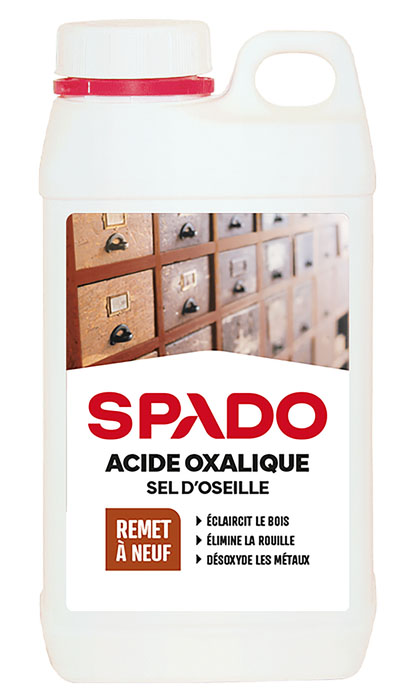 SPADO ACIDE OXALIQUE 750G Pour redonner éclat aux bois anciens, tachés ou salis, ce nettoyant puissant est une solution efficace contre la suie, la rouille, les cernes de vases et les taches de boissons. | Il élimine également les traces de pluie et autres imperfections sur les bois exotiques, révélant leur beauté naturelle. | L’Acide Oxalique – Sel d’Oseille Spaso est également idéal pour enlever la rouille sur diverses surfaces comme les carrelages, le marbre et même les vêtements. | Il désoxyde les cuivres et autres métaux, éliminant le vert-de-gris et les ternissures pour un rendu brillant et propre. | Ce produit nettoie efficacement les coques de bateau en polyester, enlevant la rouille, la graisse, les algues, le gazole, les moisissures et les dépôts jaunes de la floraison. | Connu sous le nom de « sel d’oseille », l’acide oxalique est un agent de nettoyage polyvalent et puissant, parfait pour une multitude d’applications.