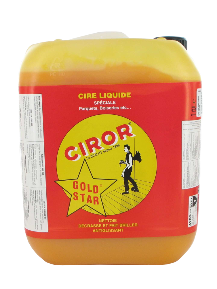 CIROR CIRE GOLDSTAR 5 L JAUNE Cire liquide CIROR Gold Star pour parquet, action anti-glissante idéale pour l’entretien des parquets. | A base de cires minérales. | Rendement : 20 à 30 m² pour 1 L. | Coloris : jaune.