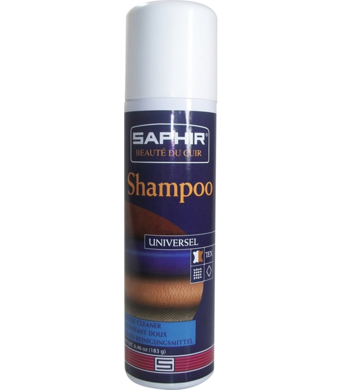 SAPHIR SHAMPOO AERO 150ML Nettoyant doux universel permettant, grâce à sa composition, de nettoyer efficacement toutes les matières sans les agresser et en préservant les finitions des supports traités | Il élimine les dépôts et salissures liés à lusage quotidien de ces articles | Ce produit se présente sous la forme dune mousse nettoyante | Tous supports : cuir lisse, daim nubuck, cuir velouté, textile…