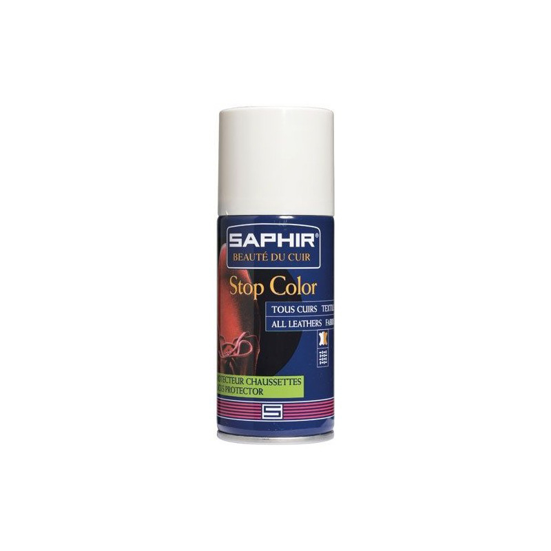 SAPHIR STOP COLOR 150ML Stabilisateur de couleur empêchant toute décharge de couleur du cuir, daim, nubuck ou du textile sur la peau, les chaussettes, les collants, les vêtements. | S’utilise sur chaussures, maroquinerie, vêtements.