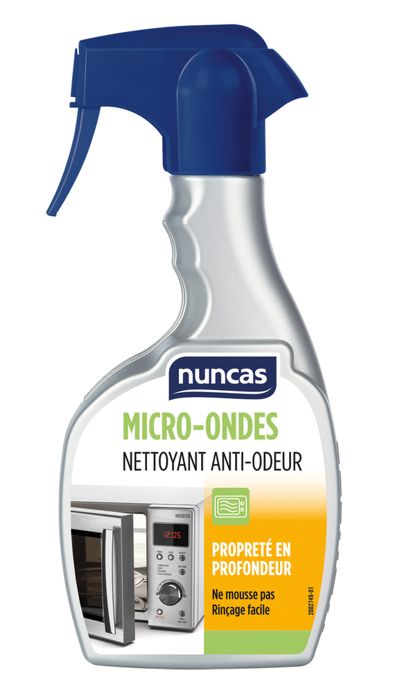 NETTOYANT MICRO ONDES 300ML Nettoie, désinfecte et désodorise en quelques minutes le four à micro-ondes. Dégraisse et élimine les résidus de nourriture et de boissons, sans abîmer les pièces métalliques, les plats tournants ou les surfaces internes émaillées. | – Indiqué également pour le nettoyage de la partie extérieure et de toutes les parties de la porte. | – Enrichi d’un ingrédient actif désinfectant, il élimine les germes et les bactéries dans tous les coins du four. | – Ne mousse pas, rinçage facile.