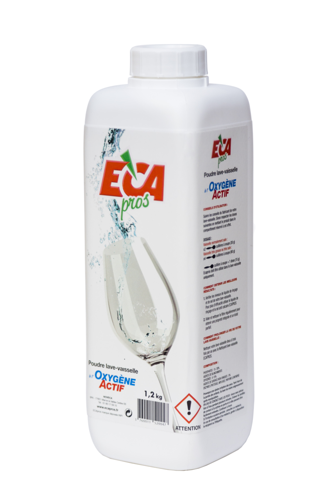 ECA PROS POUDRE LAVAGE 1.2KG Redonne de l’éclat à la vaisselle. | Enlève les traces résiduelles incrustées. | Packaging pratique et efficace qui préserve la poudre de l’humidité.