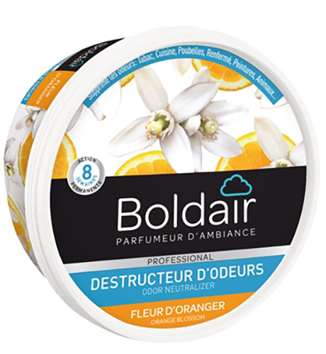 BOLDAIR GEL DEST OD FLEUR ORAN300G Parfum fleur d’oranger. | Détruit toutes les mauvaises odeurs. | Action permanente. | Jusqu’à 8 semaines.