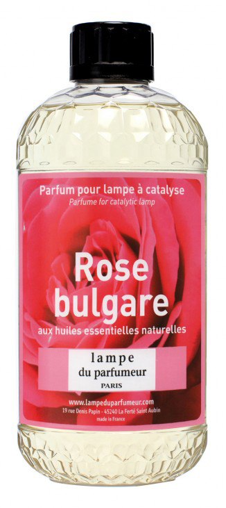 PARFUMS P/LAMPE 500ML ROSE BULGARE Senteur de la rose damascène originaire de Bulgarie aux facettes fruitées, violette, légèrement miel, soulignée d’une pointe de géranium. Une note capiteuse et poudrée. | Diffusion : 10h de fonctionnement.