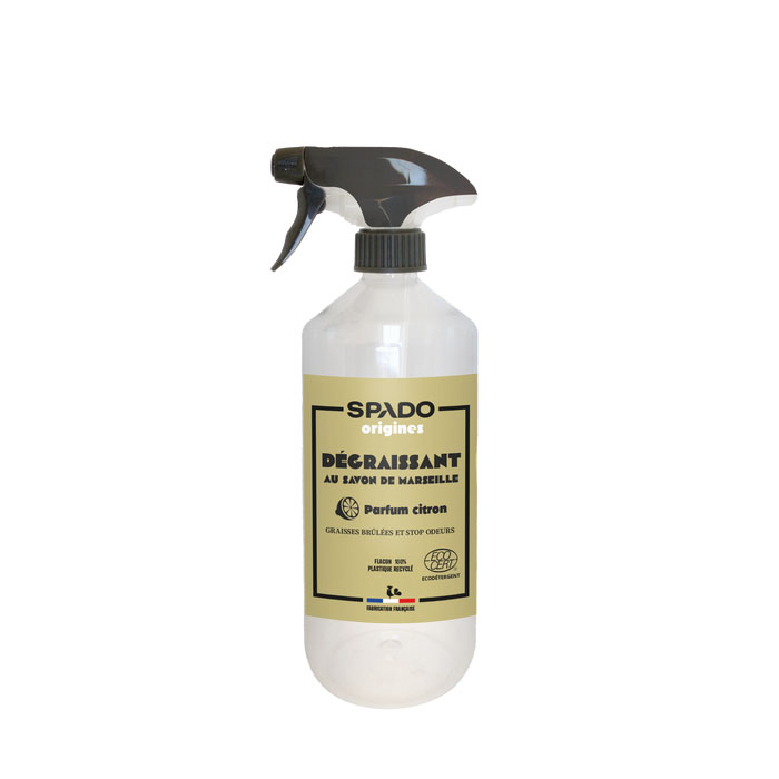 SPADO ORIGINES DEGRAIS SAV MAR 750M Nettoie, désodorise et dégraisse efficacement les fours, grilles de barbecue et planchas. | Sa formule à 96,9 % d’ingrédients d’origine naturelle est enrichie en parfum citron 100 % naturel, ce dégraissant offre une action stop-odeurs contre les graisses cuites et brûlées. | Certifié ECOCERT et prêt à l’emploi, il associe efficacité et respect de l’environnement grâce à son emballage contenant au moins 80 % de matières recyclées. | Fabriqué en France, il est idéal pour un entretien responsable et performant.