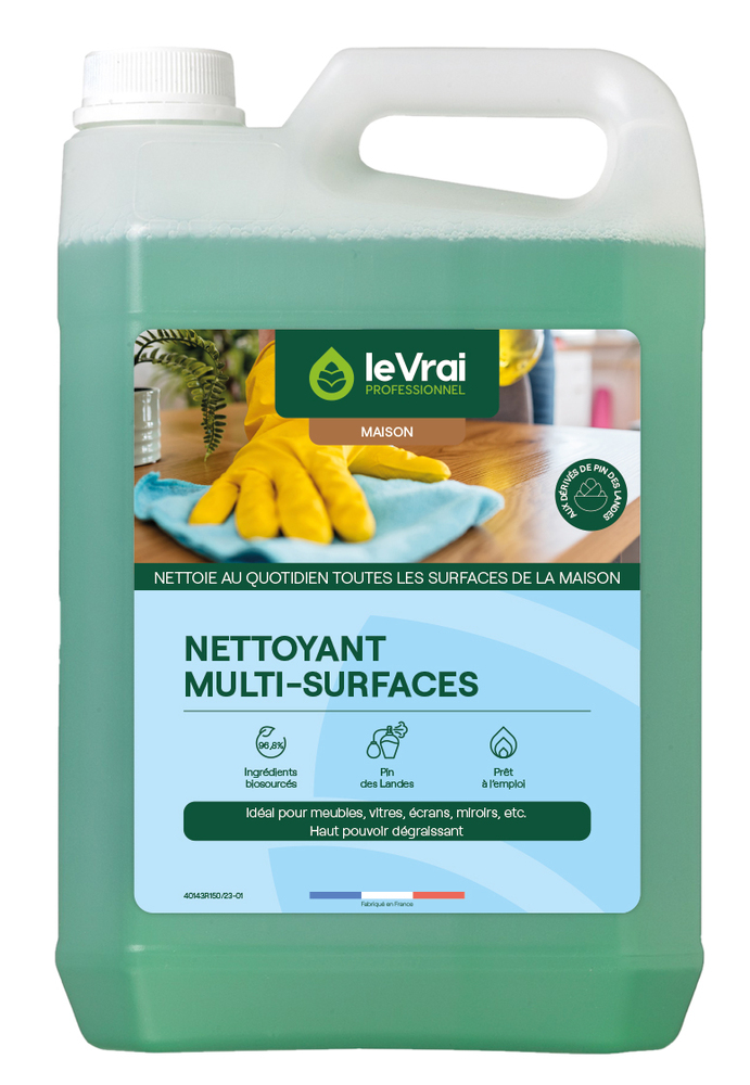 LE VRAI MAISON NETT MULTISURF 5L Formule prête à lemploi, idéale pour nettoyer quotidiennement toutes les surfaces de la maison. Nettoie et dégraisse les meubles, vitres, écrans, miroirs, etc. | Ne laisse pas de trace. Haut pouvoir dégraissant. Phénomène anti-rebond et adhésion aux surfaces.