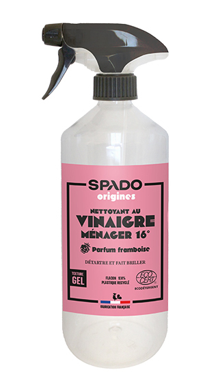 SPADO ORIGINES VINAIGRE BLC FR750ML Nettoie (vitres, sols…), détartre, élimine les taches, dégraisse et fait briller (vaisselle, cuivre…). | Idéal pour lentretien de la salle de bains (lavabos, parois de douche, toilettes, carrelages…) ainsi que de la cuisine (évier, intérieur du réfrigérateur, appareils ménagers, plans de travail…). | Sa texture gel adhère aux surfaces pour une efficacité maximale. | Parfum naturel de framboise.