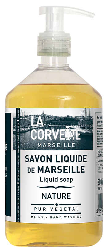 SAVON MARSEILLE POMPE 1L NATURE Elaborés à partir dhuiles 100% végétales, sans paraben, sans graisse animale, ce savon liquide de Marseille est enrichi en glycérine aux vertus hydratantes. Il lave en douceur les mains et laisse la peau saine, souple et douce.