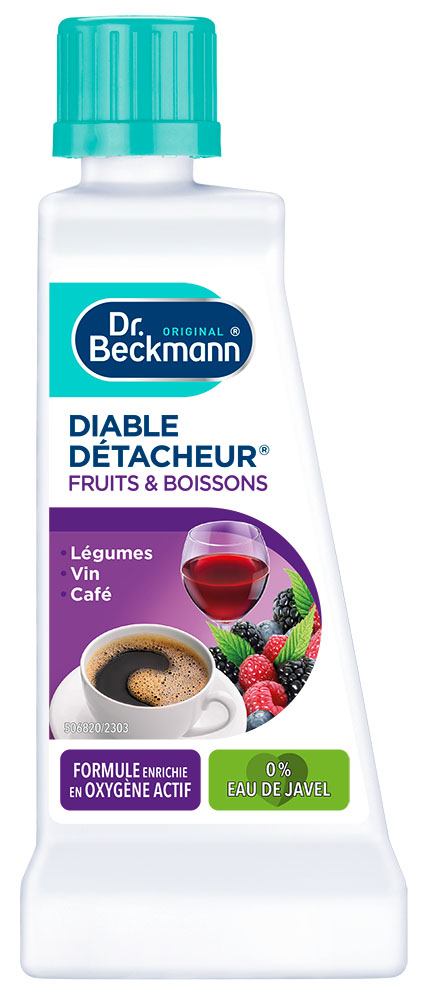 DETACHEUR LINGE FRUIT BOISSON50ML Détachant spécialement formulé pour combattre les taches causées par les fruits, boissons et résidus alimentaires colorés. | Sa formule à base d’oxygène actif agit en profondeur pour décolorer les pigments tout en préservant les tissus et les couleurs. | Il élimine efficacement les traces de café, vin rouge, cacao et autres taches tenaces d’origine alimentaire ou organique. | Le produit s’utilise sur textiles lavables et non lavables selon un mode d’application adapté. | Son action ciblée permet de traiter les salissures avant lavage ou par simple essuyage sur les supports fragiles.