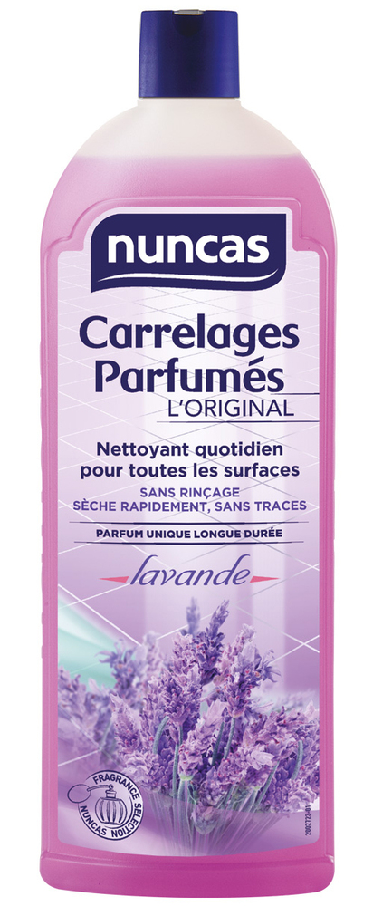 CARRELAGES PARFUMES LAVANDE 1L Le nettoyant exclusif qui nettoie à fond toutes les surfaces et garantit chaque jour le plaisir d’une maison merveilleusement parfumée. | – Fragrances uniques et inimitables qui persistent dans l’air pendant des heures. | – Sans auréoles, sans rinçage. | – Sèche rapidement.