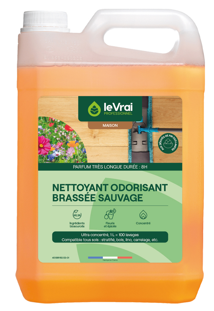 LE VRAI MAISON NETT OD BRASSEE 5L Le Nettoyant Odorisant Brassée Sauvage a une formule ultra concentrée, idéale pour nettoyer et parfumer durablement vos sols : Signe le passage dune note parfumée, raffinée et haut de gamme. Senteur fleurie et épicée. Compatible tous sols, même fragiles : stratifié, bois, lino, carrelage, etc. | 1L = 100 lavages.
