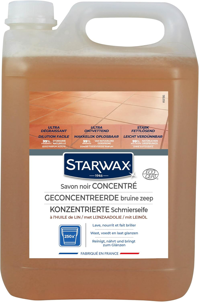 SAVON NOIR A L HUILE DE LIN 5L Nettoie les sols non protégés ( sols plastiques, carrelages émaillés ou non, marbre, grès, pierres naturelles). Nourrit et protège les terres cuites et les carrelages poreux au fil des applications. Savon d’huiles végétales.